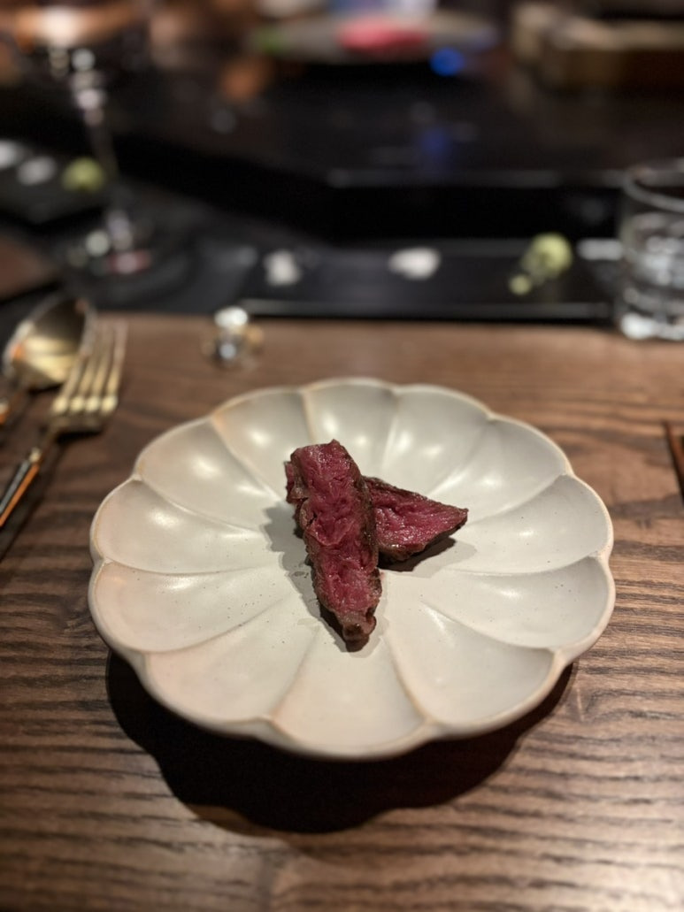 다른 한우 오마카세 가면 그릇을 안바꿔주는 경우들이 있어서 육즙 때문에 다음 고기의 크러스트가 눅눅해지는걸 본적이 있어서 모든 메뉴 모든 부위에 새 그릇을 주는게 되게 좋았어요