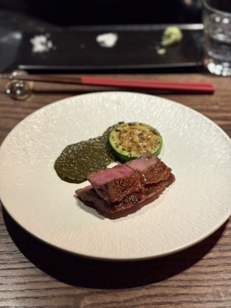 갈비살이였던것 같은데 식감이 좀 있어서 호불호가 갈릴것 같았어요. 그런데 육향도 강하고 오히려 식감이 있어거 제 기준 베스트였어요. 소금에 와사비 조합 👍🏻